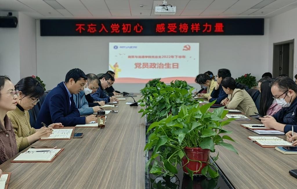 3月27日下午,商贸与流通学院教师党支部举行2022年下半年党员集体政治生日会,活动由支部书记晋淑惠同志主持,全体教职工党员参加。