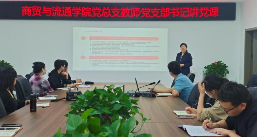 为了全面贯彻党的二十大精神,坚定实施科教兴国战略、人才强国战略,在党的坚强领导下,全面贯彻党的教育方针。6月5日下午,商贸与流通学院党总支教师支部书记晋淑惠同志在经开校区崇理楼B604会议室,为本支部的全体党员上了一次生动的党课。