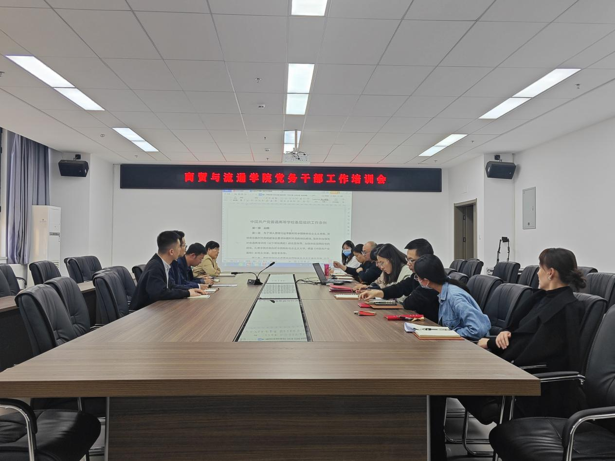 为了使党务干部的业务工作水平有一定提升。5月8日,商贸学院党总支组织全体党务干部在604会议室召开专题培训会,集体学习《中国共产党普通高等学校基层组织工作条例》。党总支副书记蒋鹏主持。