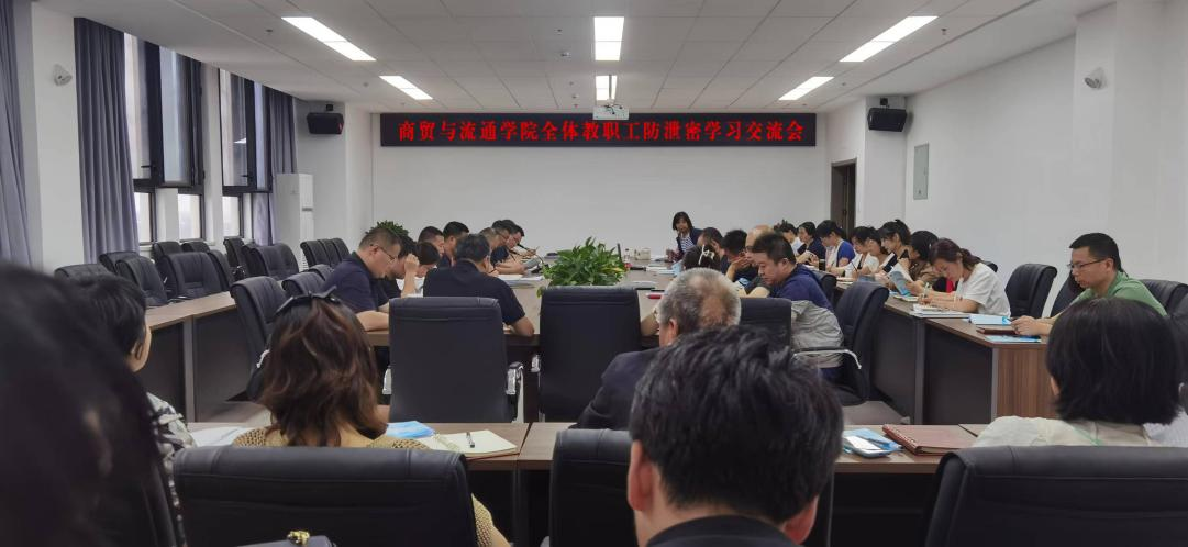 为深入贯彻落实习近平总书记关于保密工作的重要讲话和重要指示批示精神,进一步加强商贸与流通学院全体教职工的保密意识,5月15日,商贸与流通学院在崇理楼B604会议室召开全体教职工防泄密保密工作专题学习交流会。会议由学院党总支副书记蒋鹏同志主持,全体教职工参加会议。