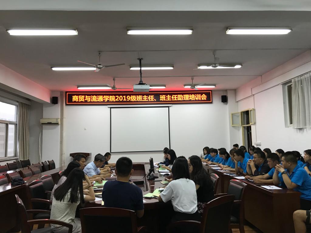 8月26日下午,商贸与流通学院召开2019级班主任、班主任助理培训会,党总支副书记王艳、全体辅导员、19级班主任和班主任助理共计四十余人参加会议,会议由学工办主任王尚宏主持。