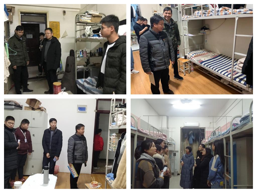 12月24日21点30分,商贸与流通学院党总支书记陈昊平、副书记王艳、学工办主任成志平、全体辅导员以及各班班主任深入学生宿舍进行公寓大检查工作。