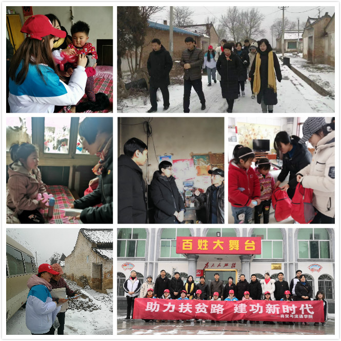 为进一步贯彻党的十九大会议精神和习近平新时代中国特色社会主义思想,积极培育和践行社会主义核心价值观。1月9日,商贸与流通学院“小红帽”实践服务队一行在党总支副书记王艳、团总支书记成志平、辅导员万永亮、岳攀等老师的带领下赴旬邑县新农村建设示范村--太村镇琅琊洼村进行寒假社会实践活动。