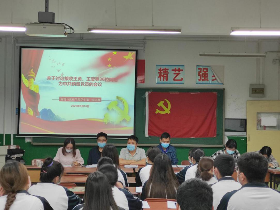 6月16日下午,商贸学院学生第一党支部接收预备党员支部大会在崇文北楼301教室顺利召开。会议由党支部书记赵俊英主持。