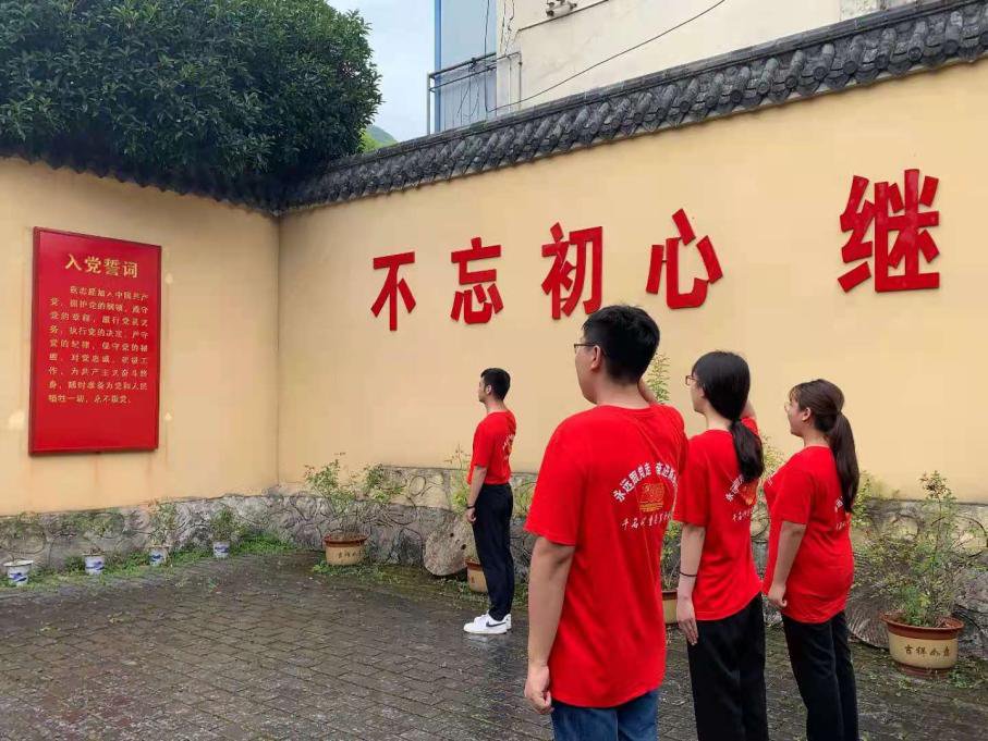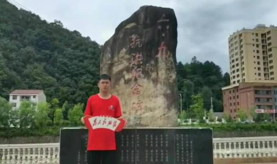 传承抗洪精神。“三下乡”最后一站,队员们到了位于汉中市佛坪县“6·9抗洪纪念碑”, 一起学习“万众一心、众志成城,不怕困难、顽强拼搏,坚韧不拔、敢于胜利”的抗洪精神,缅怀已逝的抗洪英雄。在纪念碑前,宣讲团成员荣一凡同学详细介绍6.9洪灾情况和在抗洪救灾中发生的英勇故事。实践团队员集体演唱了《团结就是力量》,给河南人民送去祝福,表达了众志成城,共克时艰的信心和决心。