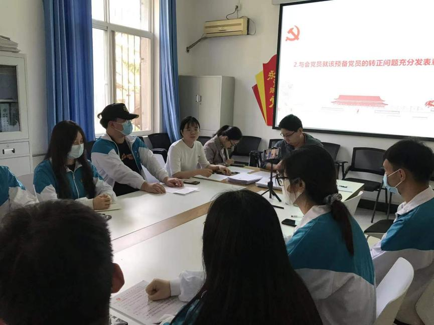大会严格按照程序进行预备党员转正议题。王朝辉、樊晋等十名预备党员现场汇报了自己在考察期间的在校表现、专升本准备情况、理论学习、工作生活情况。王盼、张敏等二十四名预备党员通过录制视频、直播连线等方式向与会同志介绍顶岗实习入职以来的思想动态、实习表现情况、工作生活情况。