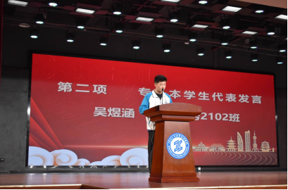 作为陕西省高校“学习贯彻党的二十大精神”宣讲团成员的吴煜涵分享了自己学习的技巧,并在仪式上讲述了自己从年幼时陪着爷爷辛勤劳作,再到参军入伍,埋下了助力乡村振兴的种子,现如今研发了小程序“急派果果”并注册陕西锦煜佳强商贸有限公司,并号召大家尽快适应专升本的学习,努力提高自己的学习能力,严于律己,树立规范意识。