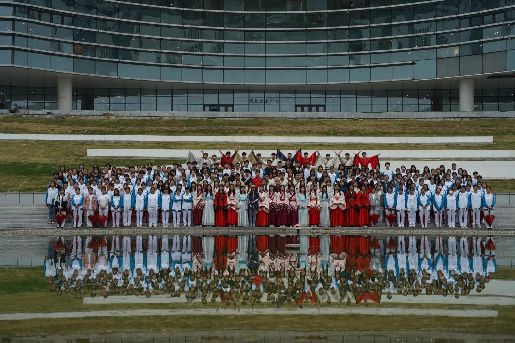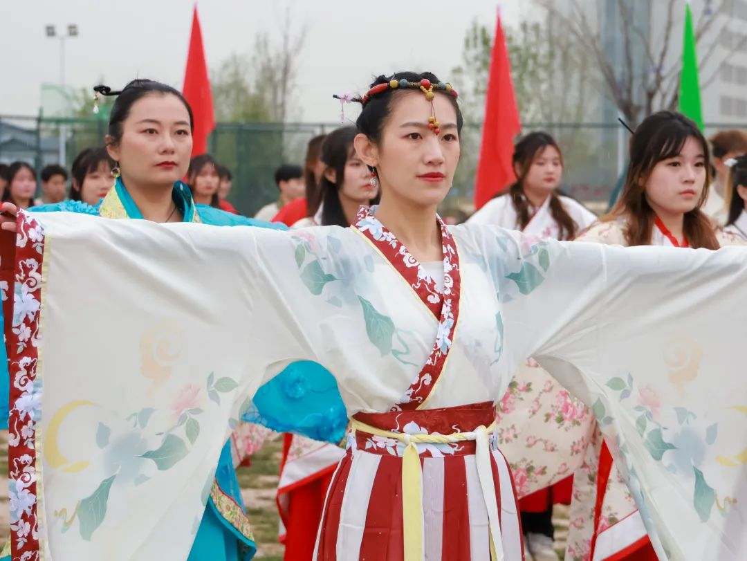 山绿起来,人富起来,是人们最朴素的追求。带着笑容,一群青春的身影出现在场地中央,把把红伞是青春激情的燃烧,串串脚印是爱国情怀的抒发。场地上此时出现的流动大红花。从周秦汉唐的气韵悠长到中国式现代化蒸蒸日上,千年弹指一瞬;从渭城到经开,225天我们一路同行,建设经开,美丽工院。做红心商贸人,干阳光流通事。立志为中华民族伟大复兴贡献青春力量,用满腔热情拥抱美丽的大中国!
