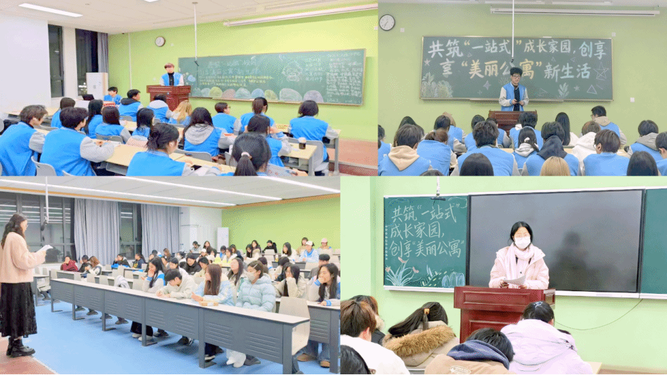 为深入学习贯彻习近平新时代中国特色社会主义思想,全面落实立德树人根本任务,切实发挥学生公寓“一站式”学生社区育人阵地作用,商贸与流通学院于11月19日组织全院各班级,统一召开了以 “共筑‘一站式’成长家园,创享‘美丽公寓’新生活” 为主题的系列班会。此次主题班会旨在将宿舍安全与文明习惯养成教育落到实处,拉开了学院本学期宿舍文明建设系列活动的序幕。