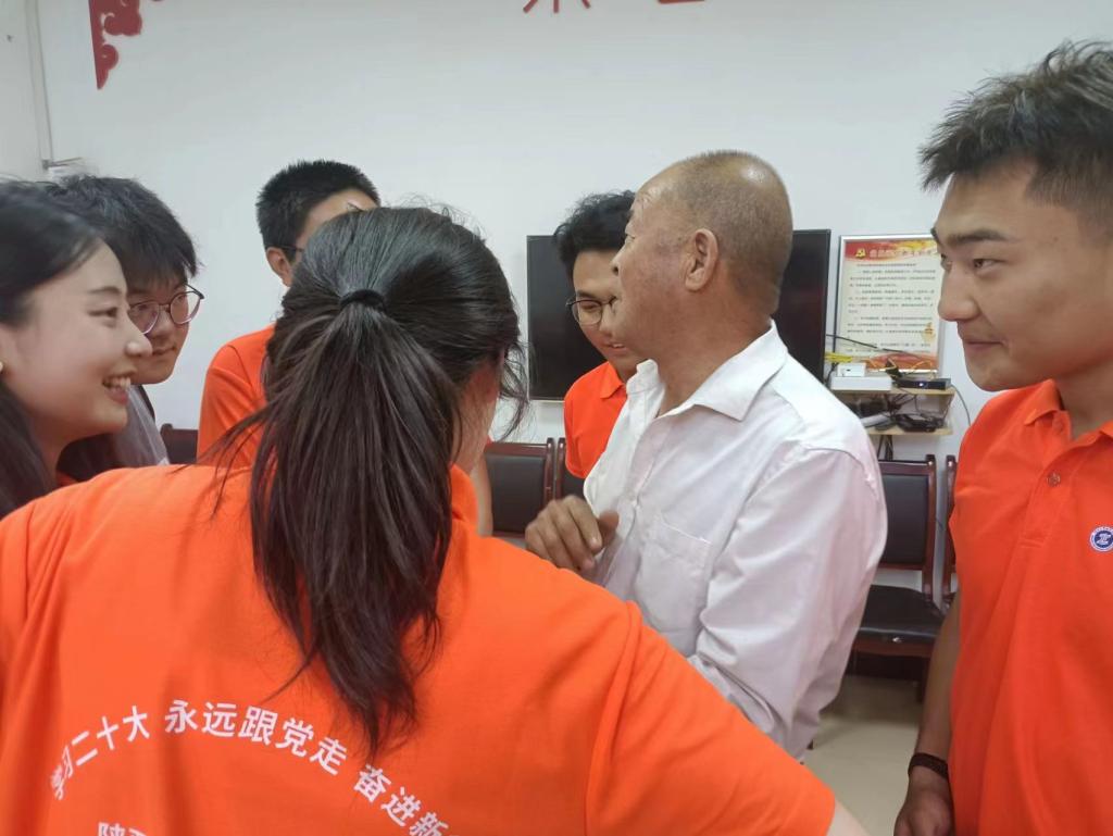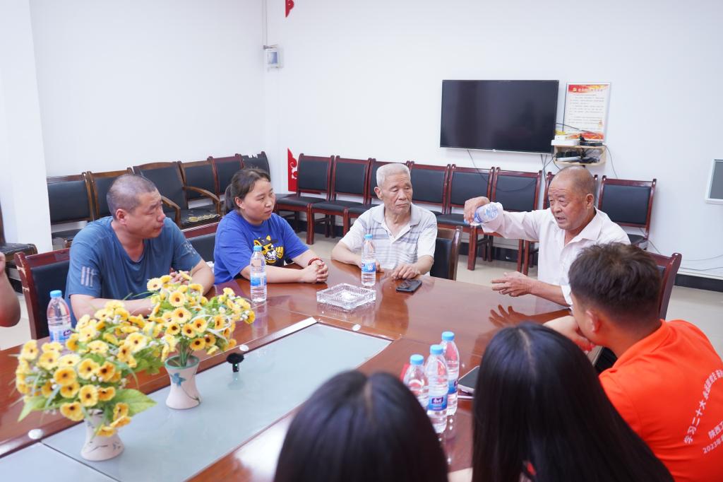 首先是崔爷爷向实践团成员讲述了他的入党经历,他是18岁时在部队入的党,在入党之前,他经历过啃树皮、吃草根的艰苦岁月。他深情地回忆,是共产党带领老百姓过上了好日子,我们之所以能有今天的美好生活,正是因为在共产党的带领下,党员与群众艰苦奋斗、努力拼搏出来的。他对实践团深入农村、深入基层的实践活动表示赞赏,希望新时代青年务必坚定不移听党话、跟党走,牢记青年使命,做好时代答卷。崔爷爷还提到,别看自己现在年龄很大了,但在自媒体平台上也是有着好几万的粉丝呢,老了也是为宣传村子发光发热的。