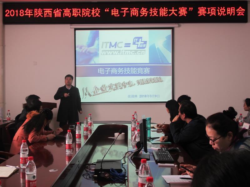 花香满园,春意盎然,3月9日,物流管理学院成功举行2018年陕西省职业院校技能竞赛“电子商务技能赛项”说明会。来自全省23所兄弟院校的40多名领导和老师参加了此次会议。物流管理学院院长李选芒、电子商务教研室全体教师、中教畅享(北京)科技有限公司技术总监张强林等参加了本次会议。会议由物流管理学院副院长王永莲教授主持。