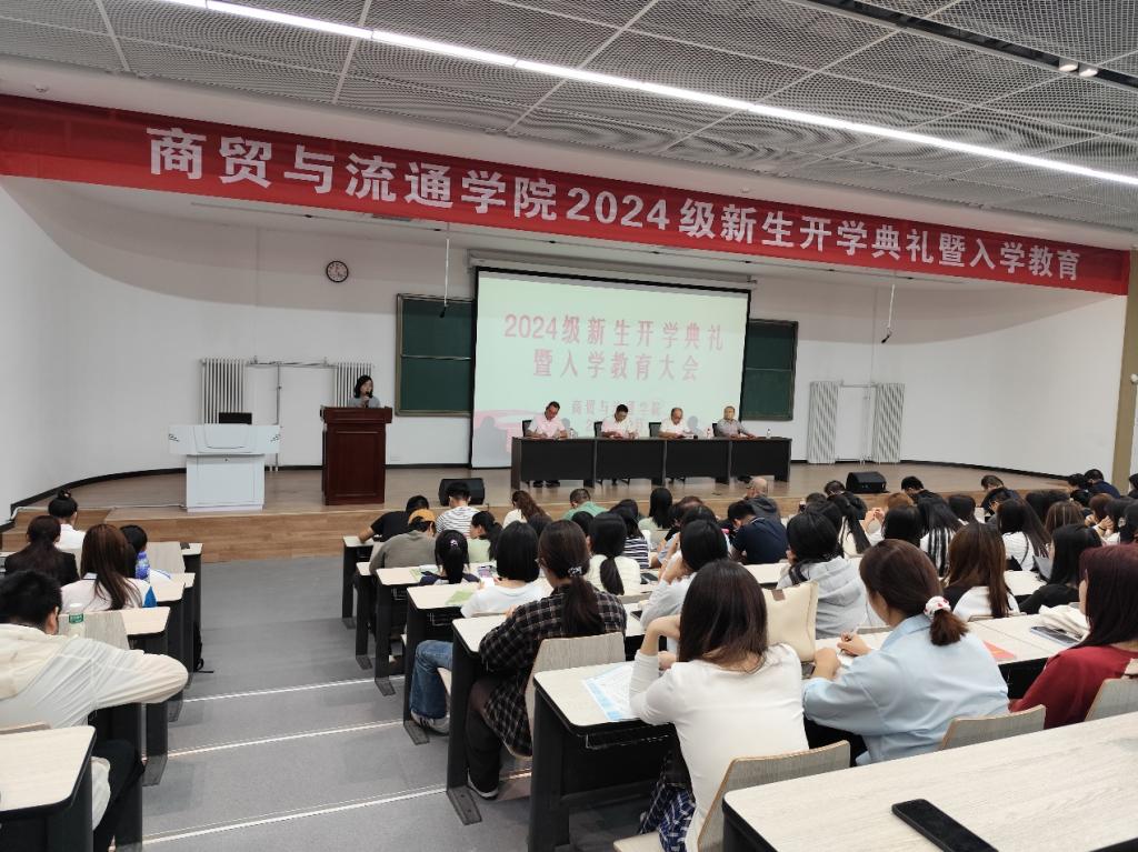 9月23日下午,商贸与流通学院在崇理楼E100隆重举行2024级新生开学典礼暨入学教育大会。商贸与流通学院党总支副书记蒋鹏、副院长张光(主持工作)、副院长杨涛、学工办主任王禹程及教师代表、全体辅导员、新生班主任和2024级新生参会。大会由商贸学院副院长杨涛主持。