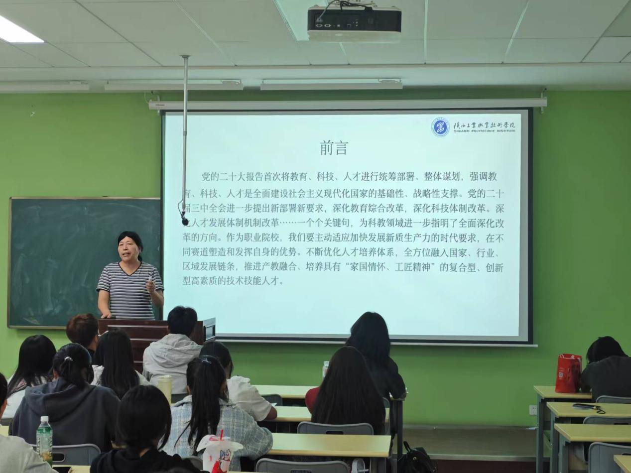 王小芳老师从大学学习方法、保持良好的生活状态等方面入手,为同学们提供了宝贵的建议。同时着重介绍了国家技能竞赛,鼓励学生积极参与,以锻炼技能,增加自己的综合素质,同时也鼓励他们充实大学生活。