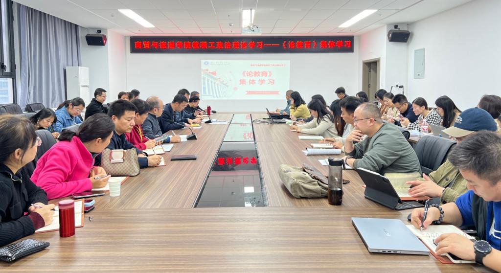 10月21日,商贸与流通学院召开全体教职工专题学习,集体学习了中共中央党史和文献研究院编辑的习近平同志《论教育》专题文集。学院党总支副书记蒋鹏同志主持学习会,全体教职工参加。