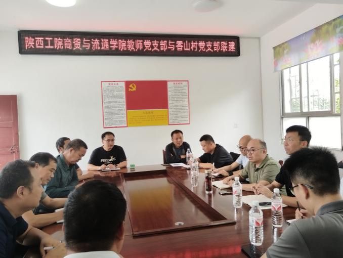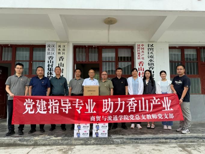 为深入贯彻落实党的二十大关于全面推进乡村振兴的战略部署,充分发挥党建引领作用,推动高校资源与乡村发展深度融合。6月25日,商贸与流通学院党总支副书记蒋鹏、党总支副书记、副院长张光带领教师党支部党员代表、行业专家组织调研团,赴学校对口帮扶的安康市汉滨区流水镇香山村开展支部共建工作。此次活动以党建为纽带,聚焦产业发展难题,为乡村振兴注入新动能。