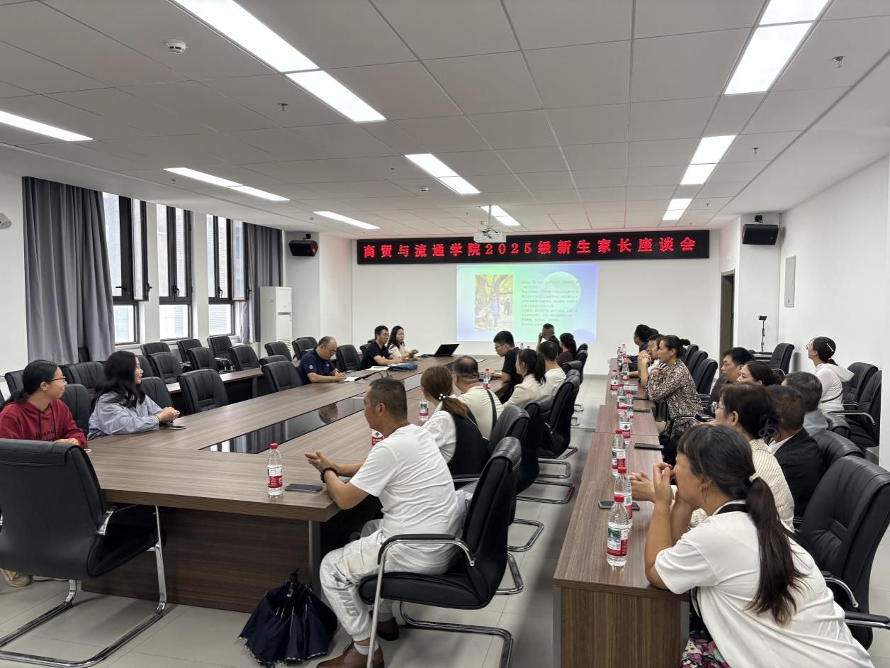 为了搭建家校共育沟通的桥梁,让新生家长全面了解学院情况,共同助力新生开启大学新篇章。9月11日,商贸与流通学院在崇理楼B604会议室召开2025级新生家长座谈会。学院党总支副书记蒋鹏、2025级辅导员杜鑫、2025级全体班主任及30余名新生家长参加了本次座谈会。
