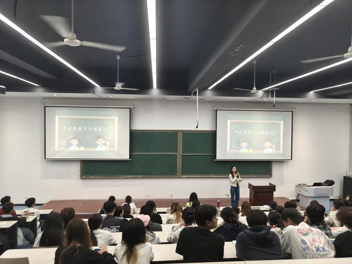 “怎样读好大学”板块则为新生提供了实用的学习指引。李倩老师结合自身教学经验分享大学学习方法优化技巧,从课堂效率提升到课后知识巩固,为新生梳理了科学的学习路径;刘媛老师紧接着以“优秀学习习惯如何养成”为主题,分别从时间管理、自律培养等角度给出建议,鼓励新生尽快适应大学学习节奏,养成受益终身的学习习惯。 在个人气质与兴趣养成环节,张海云老师以“商务礼仪和个人气质提升的重要性”为核心,从职场礼仪规范到日常行为修养,引导新生重视综合素养提升,为未来职业发展提前做好准备。此外,讲座还特别邀请了两名2024级优秀学长学姐分享了自己的学习心得、校园生活经验,以同龄人视角为新生提供了更贴近、更易借鉴的参考,现场互动氛围热烈。