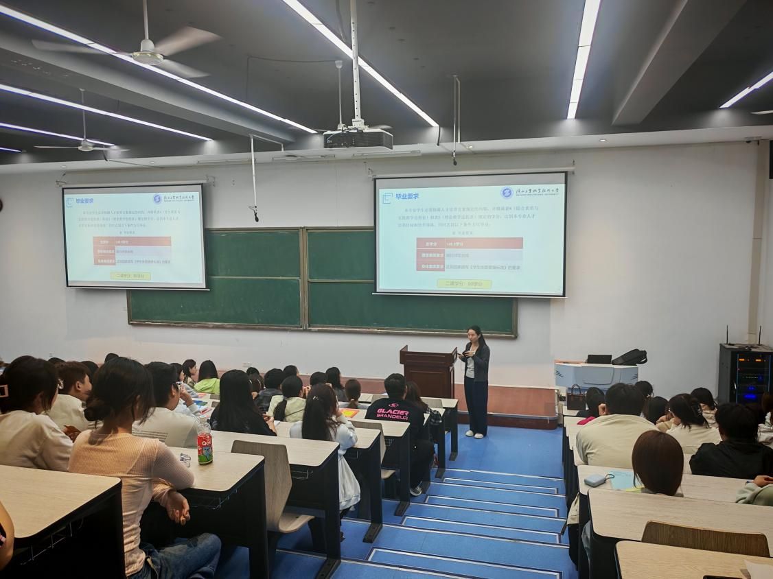 接着由李婷老师聚焦专业培养规格、理论课程体系、毕业条件等关键内容进行了细致的解读。帮助新生明确专业学习的目标与要求;随后,刘瑞老师围绕实习实训安排、校企合作资源、过往就业情况展开介绍,通过真实案例与数据,让新生直观感受到专业的实践优势与就业前景,进一步坚定了大家学好专业的信心。