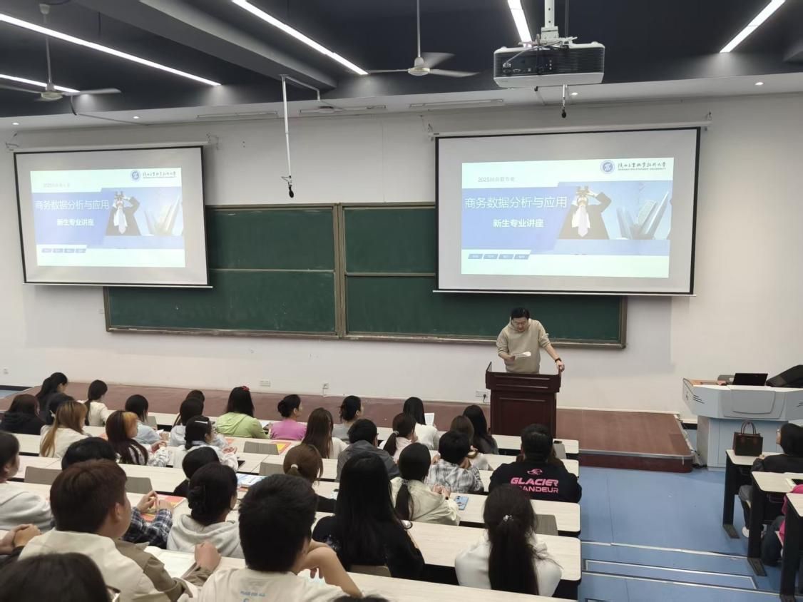 为帮助2025级商数专业新生快速了解专业概况、明确大学学习方向、更好地融入校园生活,9月29日晚19:30,商务数据分析教研室在经开校区崇理楼E104隆重召开入学专业介绍会。本次介绍会由帅珍珍老师主持,围绕专业认知、学习方法、习惯养成、气质提升等核心内容展开,为新生开启大学新篇章奠定坚实基础。
