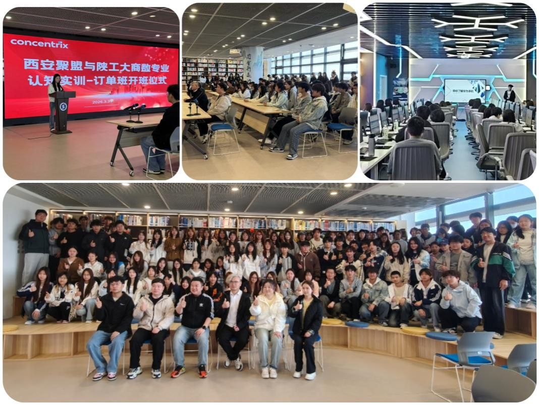 3月31日上午,商务数据分析与应用专业2025级认知实训暨订单班开班仪式在经开校区图文信息中心“工院记忆-研学空间”顺利举行,西安聚盟科技企业领导、培训讲师与商数教研室教师及2025级全体学生共同参与。